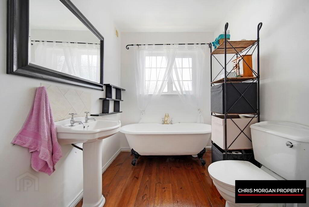 WOODEN FLOOR, WC, WHB, FREESTANDING BATH, SHOWER, DOUBLE RADIATOR, EXTRA FAN