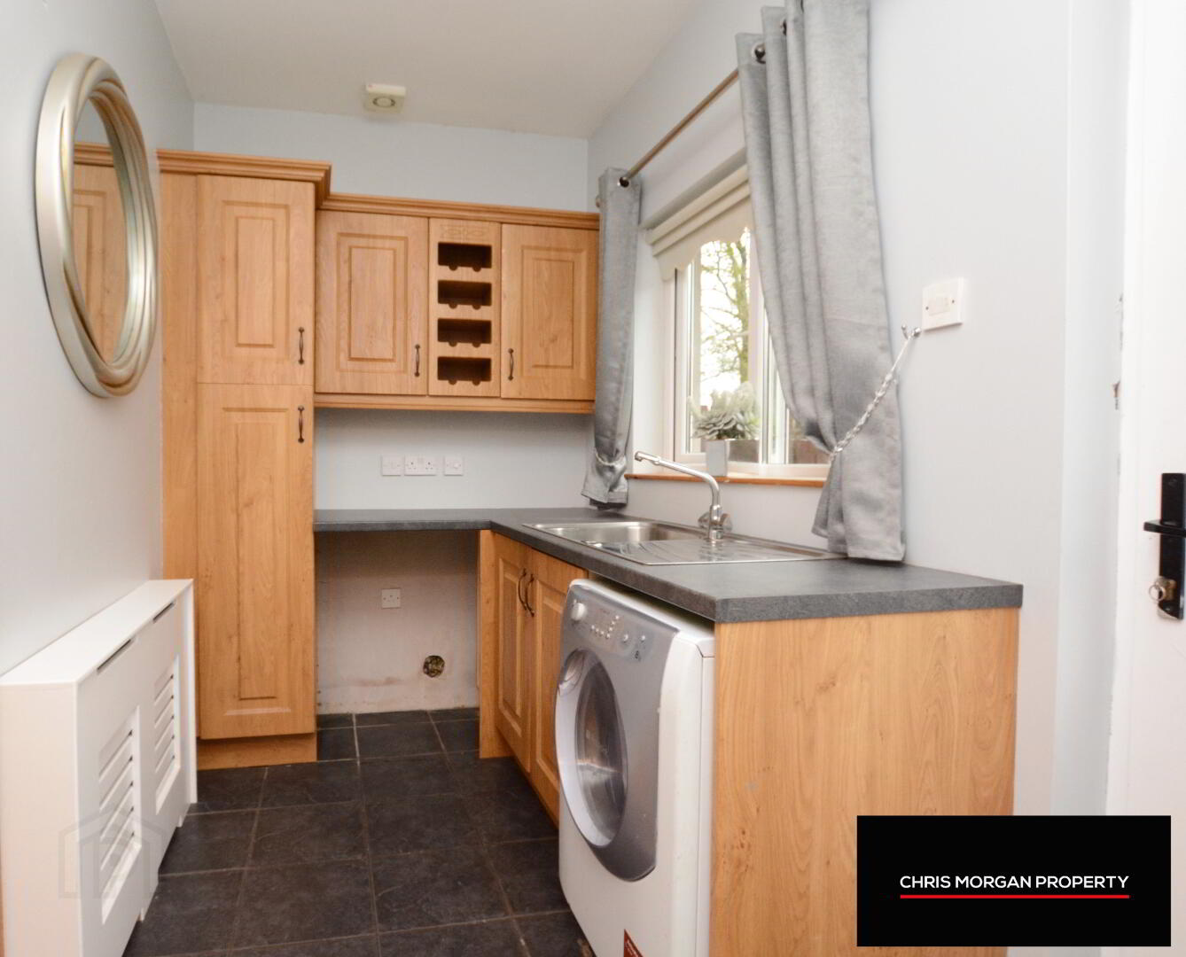 UTILITY ROOM 2.6 X 3.5M WITH TILED FLOOR AND HIGH AND LOW UNITS WITH 1 1/2 SINK UNITS.