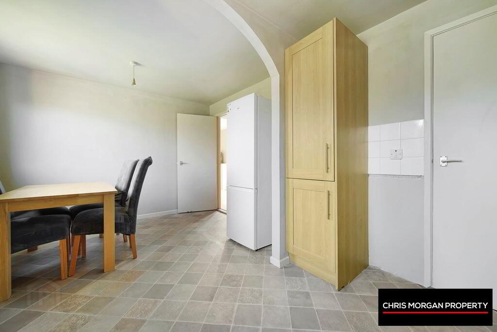 LAMINATE FLOORING, HIGH AND LOW UNITS WITH TILED SPLASHBACK WALLS AND SPACE FOR INTEGRATED APPLIANCES, STAINLESS STEEL SINK WITH WASHER TAP, STORAGE SPACE UNDER STAIRS, DOUBLE RADIATOR, WALL SOCKETS
