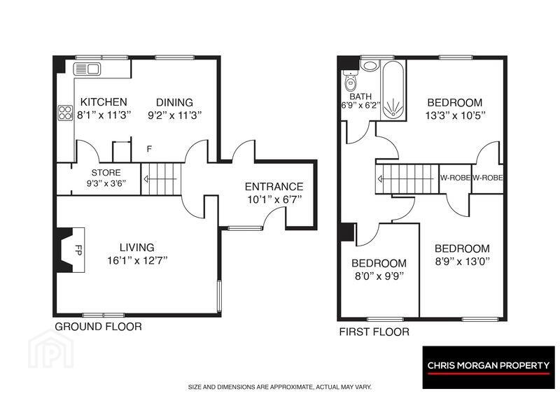 INTERNALLY - THE PROPERTY BENEFITS FROM A SPACIOUS ENTRANCE HALLWAY, LARGE LIVING AREA WITH OPEN FIREPLACE IN SITU, KITCHEN/DINING AREA, 3 SPACIOUS BEDROOMS (2 WITH BUILT IN STORAGE SPACE) AND ALSO A 3 PIECE FAMILY BATHROOM.