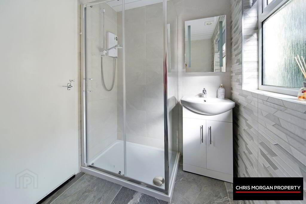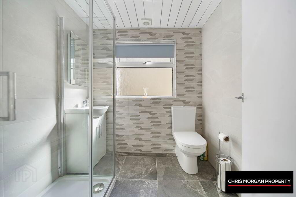 TILED FLOOR AND WALLS, SPOTLIGHTS TO CEILING, WC, WHB, SHOWER, MOUNTED WALL MIRROR, HEATED TOWEL RAIL, EXTRA FAN