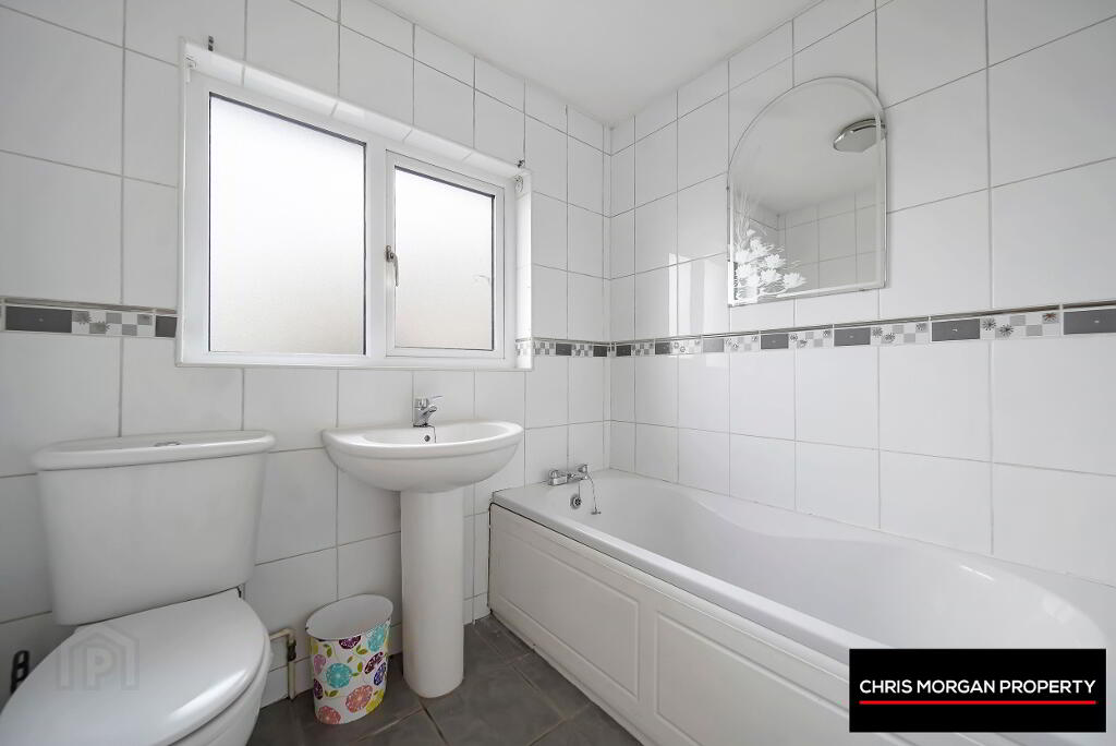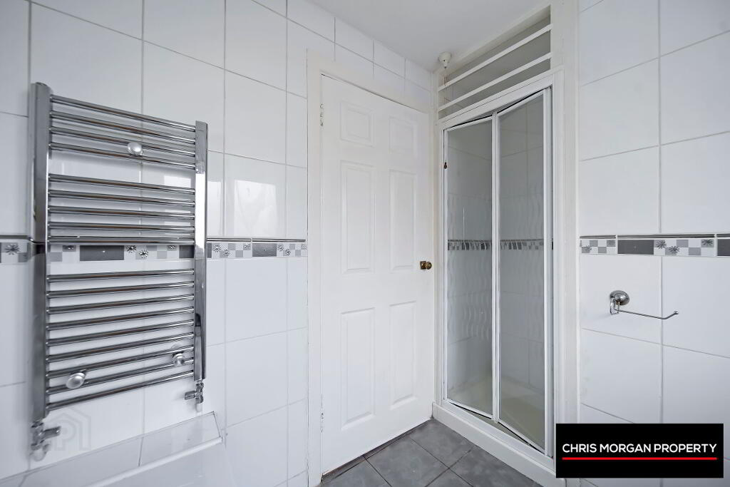 4 PIECE BATHROOM SUITE, TILED FLOOR & WALLS, WC, WHB, BATH, SHOWER, TOWEL WRACK