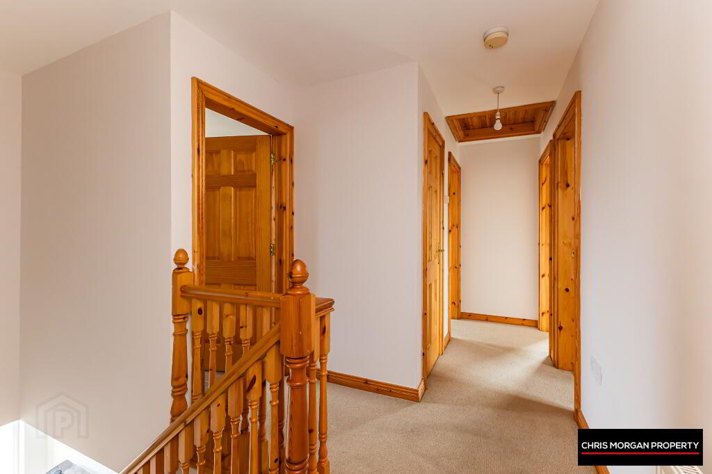 CARPET TO STAIRS AND LANDING, SHELVED HOTPRESS AREA, SINGLE RADIATOR, WALL SOCKETS