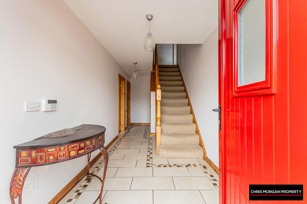 UPVC DOOR TO ENTRANCE, TILED FLOOR, CARPET TO STAIRS, BUILT IN STORAGE SPACE UNDER STAIRS, DOUBLE RADIATOR, WALL SOCKETS