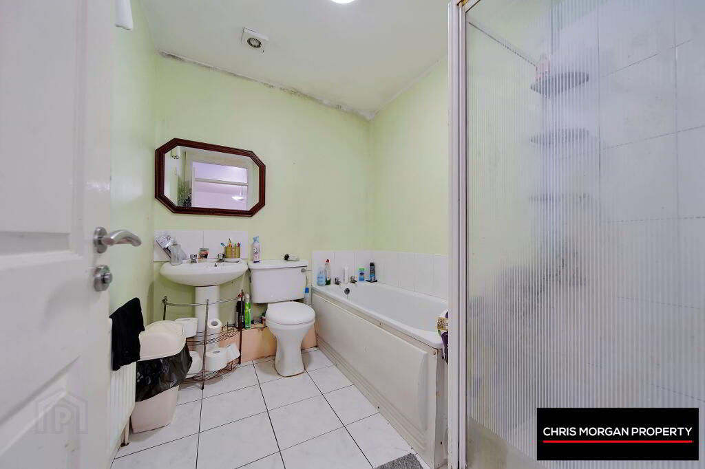 TILED FLOOR, WC, WHB, SHOWER, BATH, SINGLE RADIATOR, EXTRA FAN