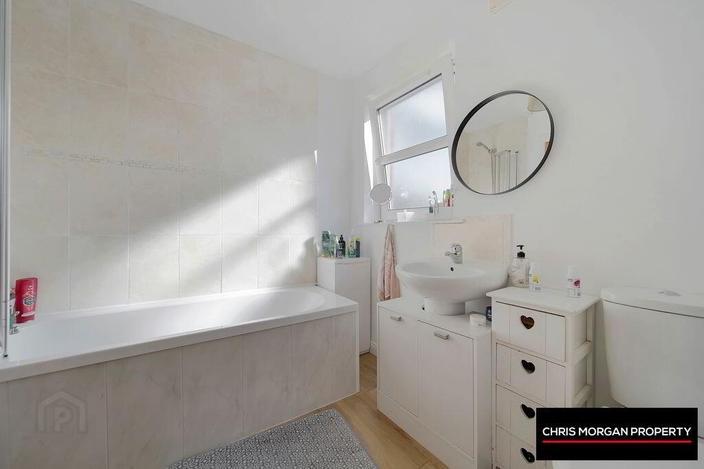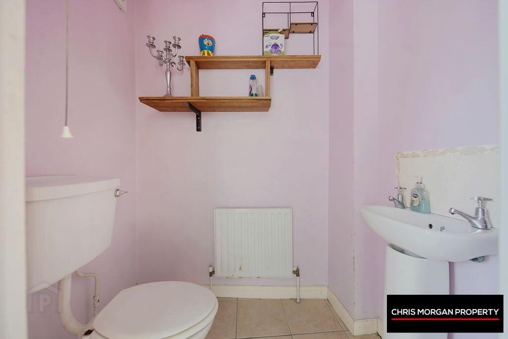 WOODEN FLOOR, WC, WHB, BATH WITH SHOWER HEAD, SINGLE RADIATOR, EXTRA FAN