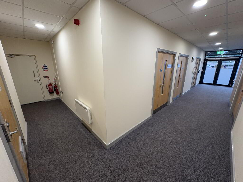 DOUBLE ELECTRIC POWERED DOORS TO ENTRANCE, ALARM SYSTEM, CARPET FLOOR, ELECTRIC WALL MOUNTED HEATERS, RANGE OF WALL SOCKETS