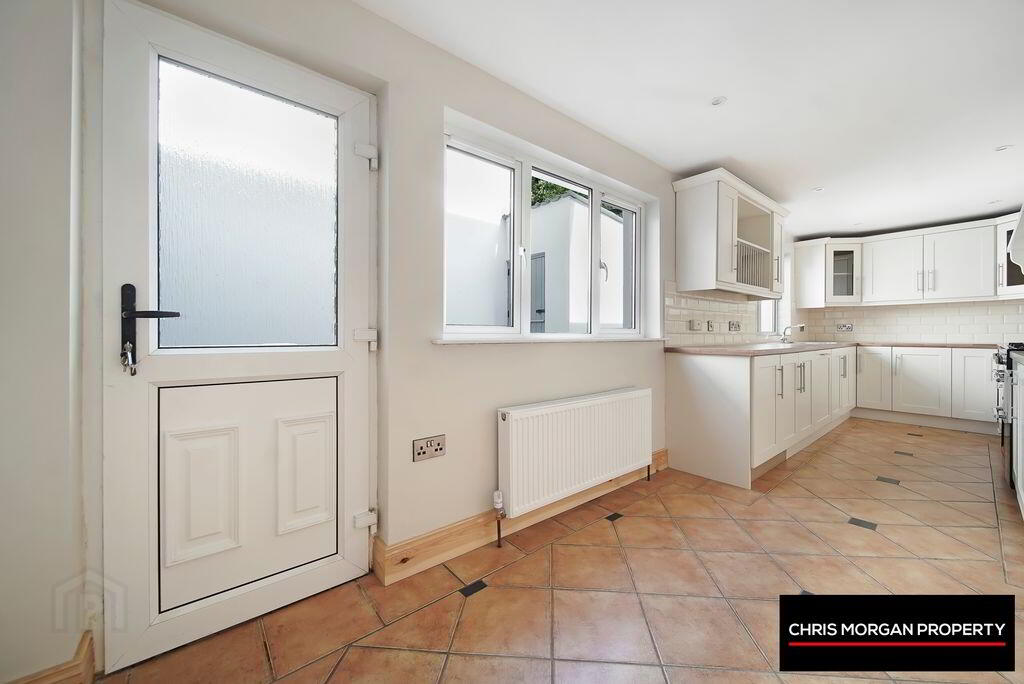TILED FLOOR, HIGH & LOW UNITS WITH TILED SPLASHBACK WALLS, INTEGRATED BELLING COOKER, SPOTLIGHTS TO CEILING, STAINLESS STEEL SINK WITH WASHER TAP, DOUBLE RADIATOR, TV POINTS, WALL SOCKETS, BUILT IN SEATING AREA TO WALL, UPVC DOOR LEADING TO REAR OF PROPERTY