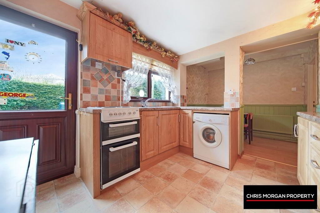 WOODEN/LAMINATE FLOOR, HIGH AND LOW UNITS WITH TILED SPLASHBACK WALLS AND SPACE FOR INTEGRATED APPPLIANCES, STAINLESS STEEL SINK WITH WASHER TAP, SINGLE RADIATOR, DOUBLE RADIATOR, WALL SOCKETS, UPVC DOOR LEADING TO REAR OF PROPERTY