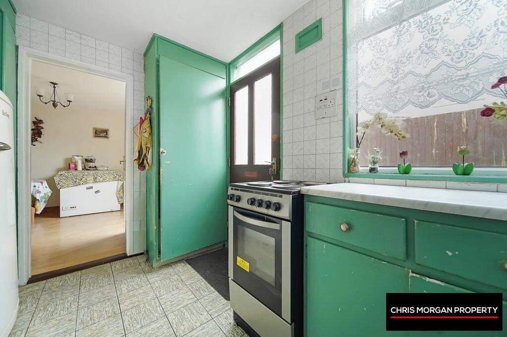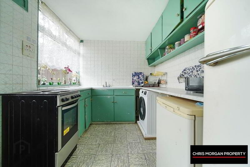 TILED FLOOR AND SPLASHBACK WALLS AND SPACE FOR INTEGRATED APPLIANCES, SINK WITH WASHER TAPS, BUILT IN PANTRY/STORAGE SPACE, WALL SOCKETS, WOODEN DOOR LEADING TO REAR OF PROPERTY