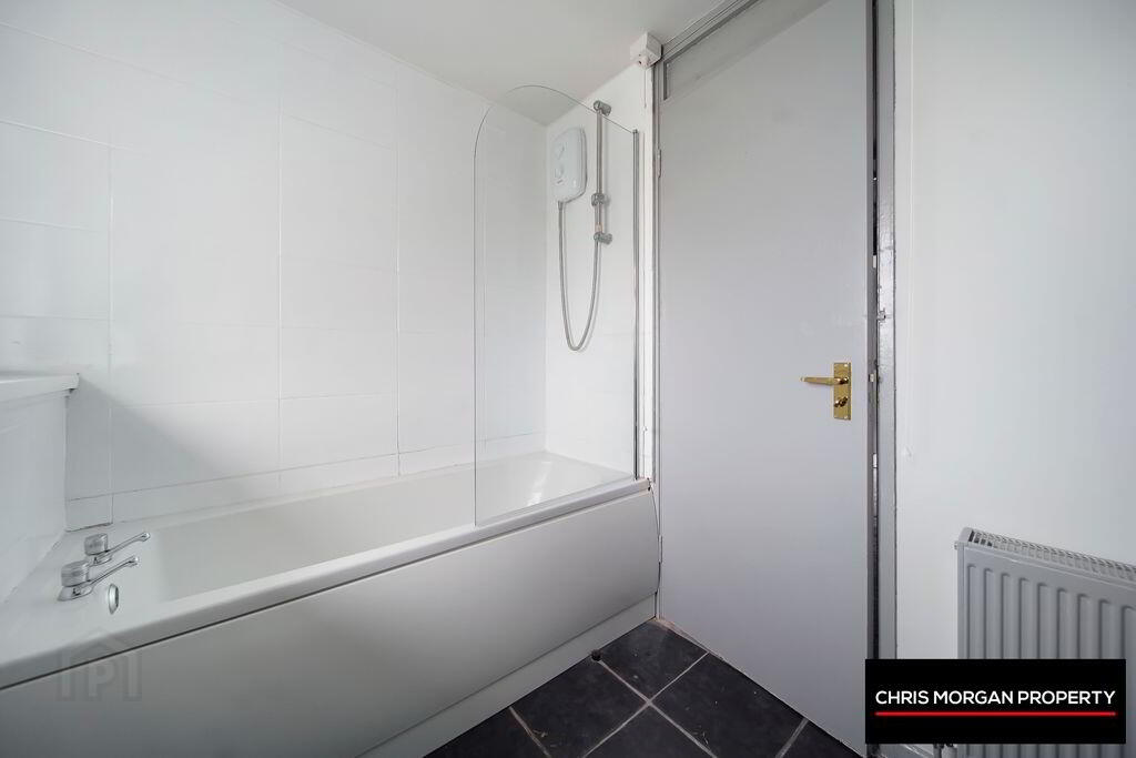 TILED FLOOR, WC, WHB, BATH WITH SHOWER HEAD, DOUBLE RADIATOR