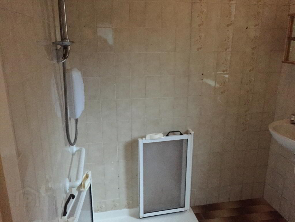 BATHROOM 2 2 X 2.2 M WITH SHOWER UNIT AND FULLY TILED WALLS AND FLOOR.