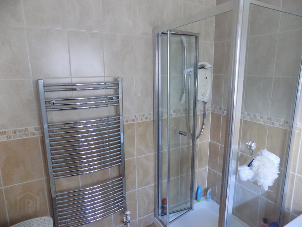 FAMILY BATHROOM 2.3 X 2.2 M WITH TILED FLOOR , 3 PIECE SUITE AND SEPERATE POWER SHOWER UNIT. ALSO THERE IS A STAINLESS STEEL HEATED TOWEL RAIL.