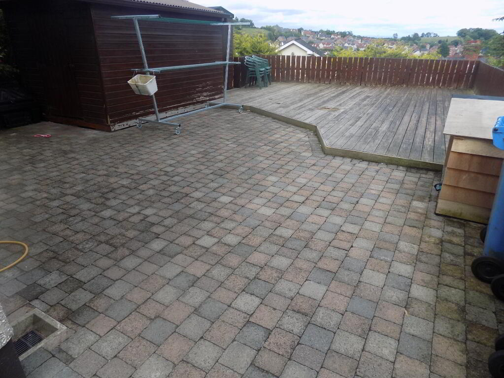 NEAT FRONT LAWN AND REAR ENCLOSED AREA WITH PATIO AREA AND DECKING WITH EXCELLENT VIEWS. ALSO THERE IS A TARMAC DRIVEWAY AND AMPLE FOR OFF STREET CAR PARKING
