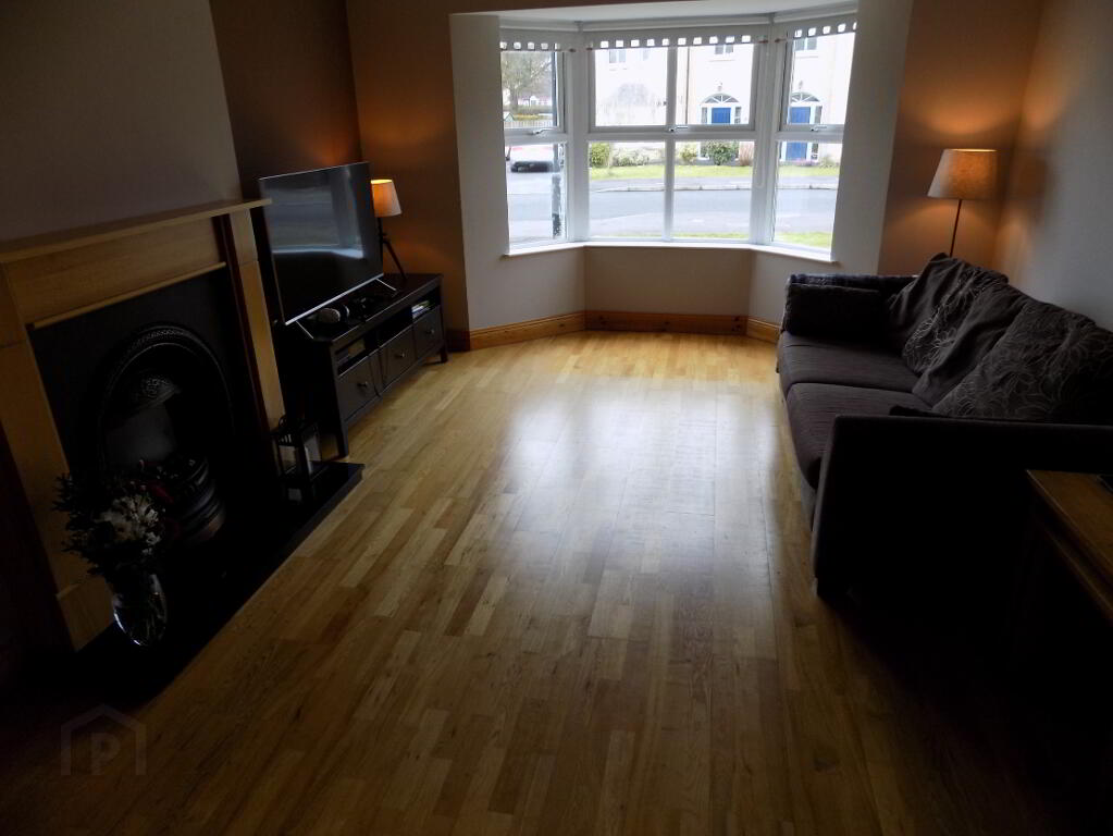 LIVING ROOM WITH BAY WINDOW 5.22 M X 2.91 M WITH WOODEN FLOOR AND WOODEN FIREPLACE