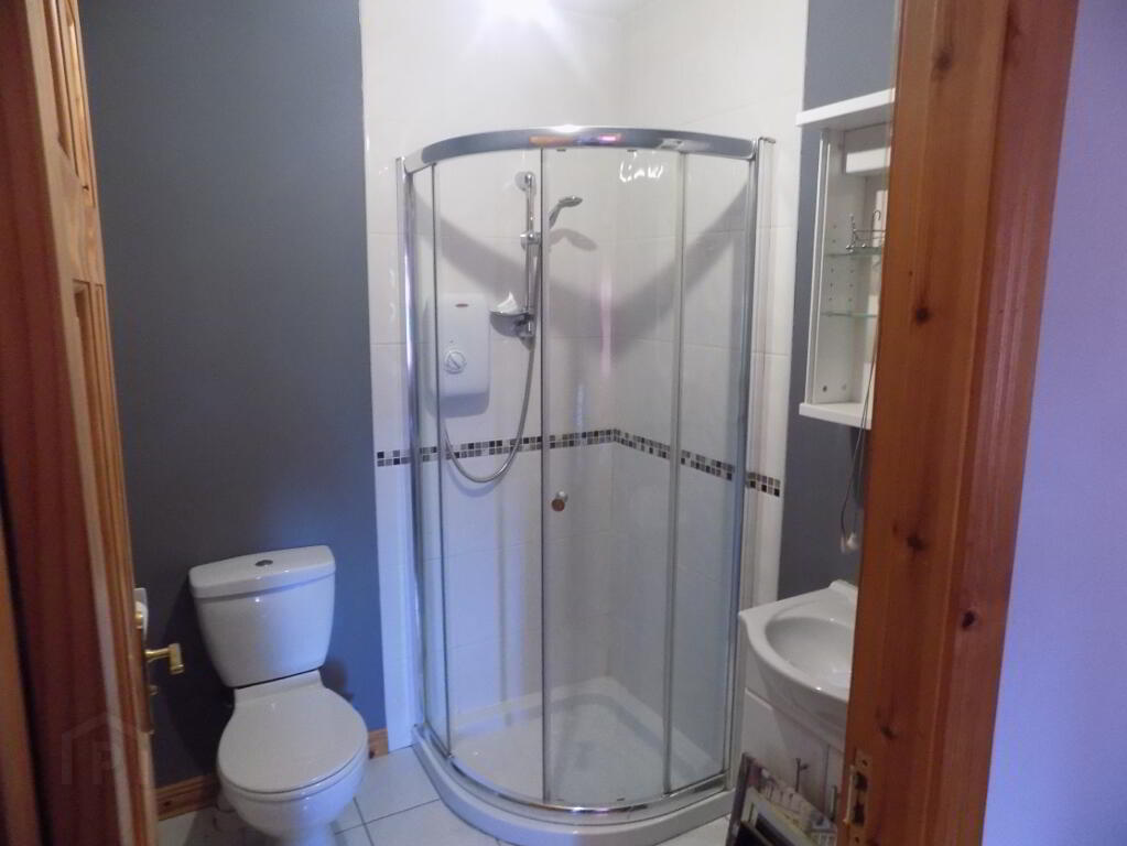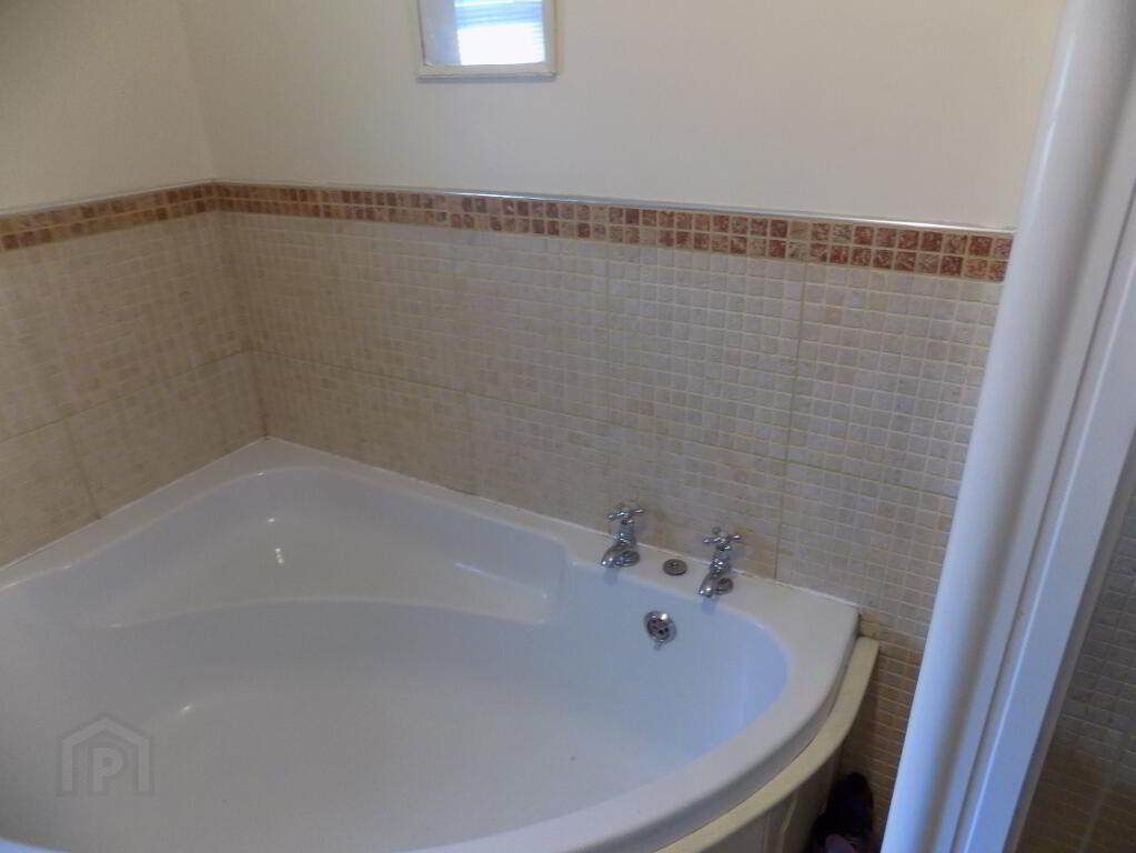 FAMILY BATHROOM 2.93 X 3.66 M WITH WHITE SUITE INC BATH , WC, WHB AND SEPERATE SHOWER UNIT AND TILED FLOOR