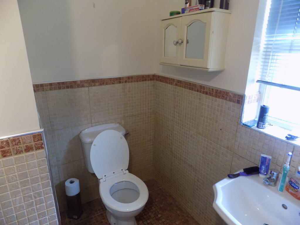WC 1.45 X 1.25 M WITH TILED FLOOR AND WHITE WHB AND WC UNITS