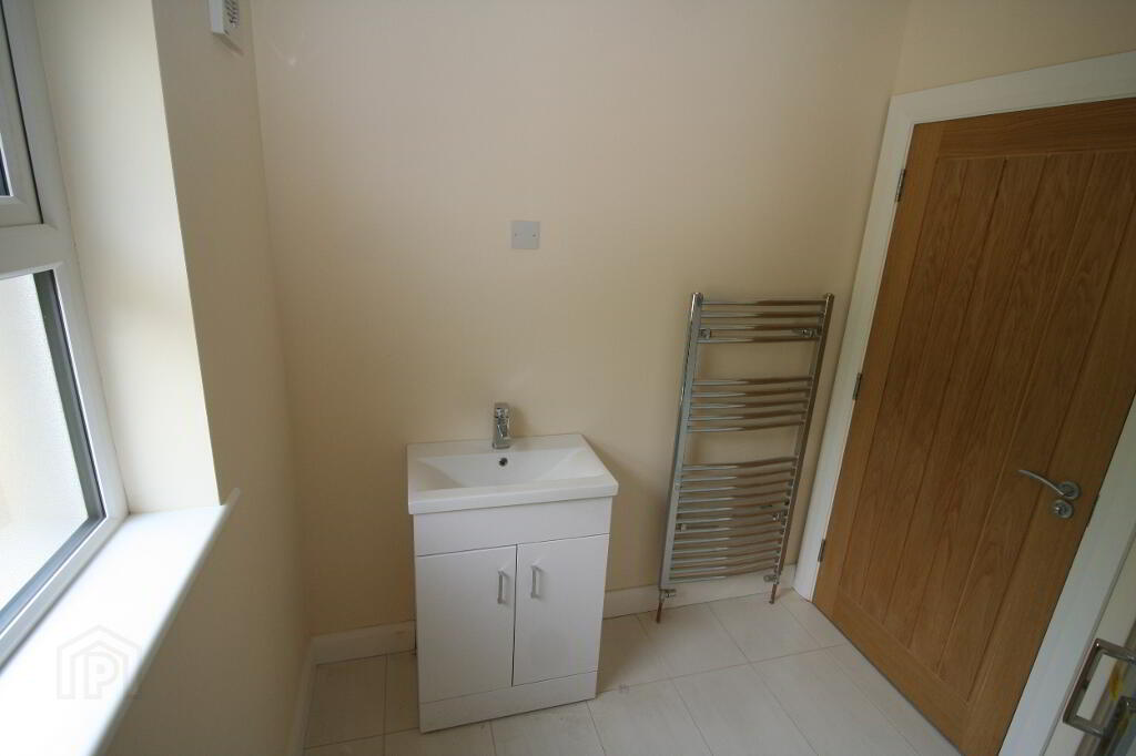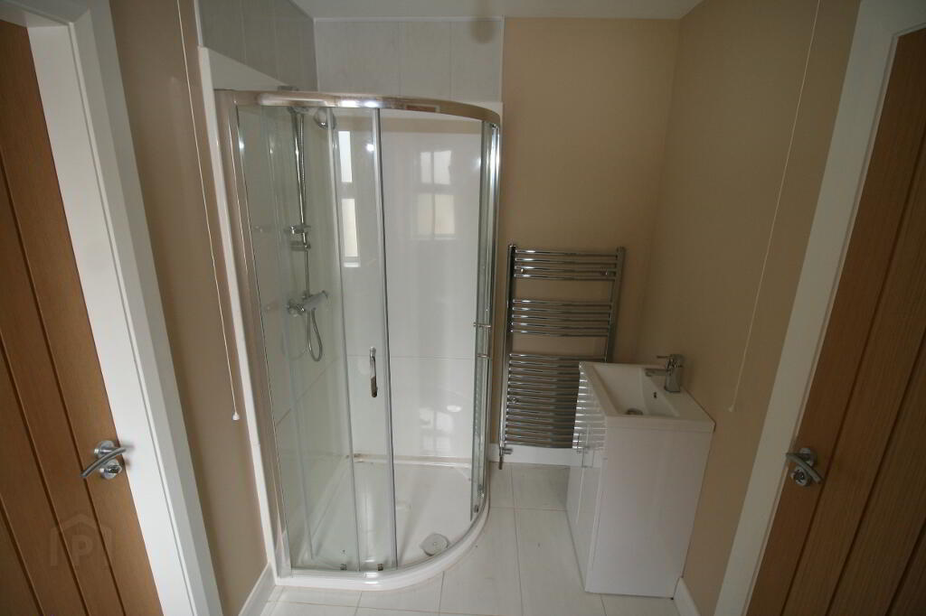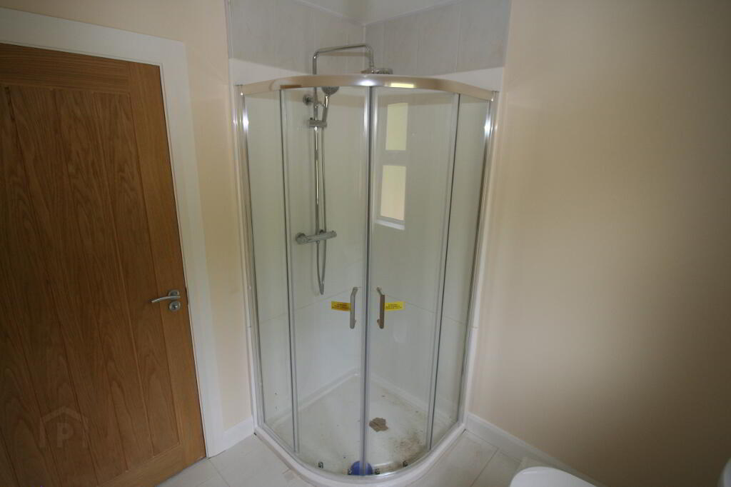 BEDROOM 3 4.8 X 3.87 WITH WOODEN FLOOR AND ADJOINING AND INTERCONNECTING ENSUITE BATHROOM FOR BOTH BEDROOMS . MEASURING 2.95 X 1.95 M WITH TILED FLOOR AND SHOWER UNIT , HEATED TOWEL RAIL, WHB AND WC ALL IN A TASTEFUL WHITE SUITE.