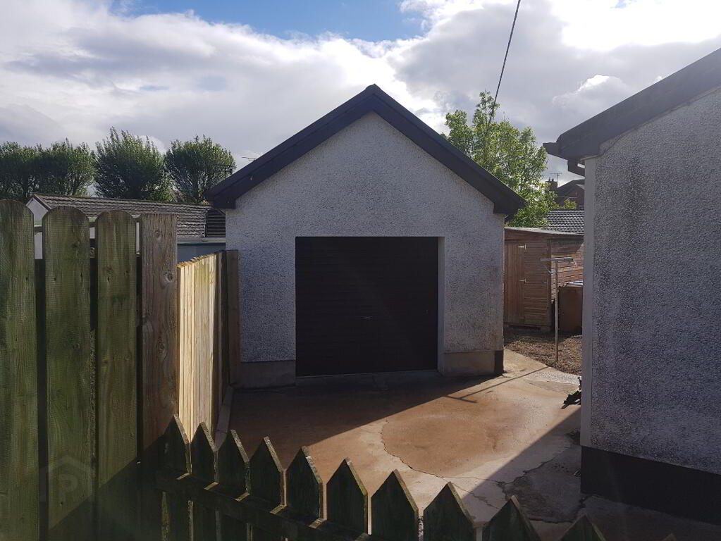 GARAGE TO REAR OF PROPERTY WITH ELECTRIC GARAGE DOOR AND UPVC SIDE DOOR.