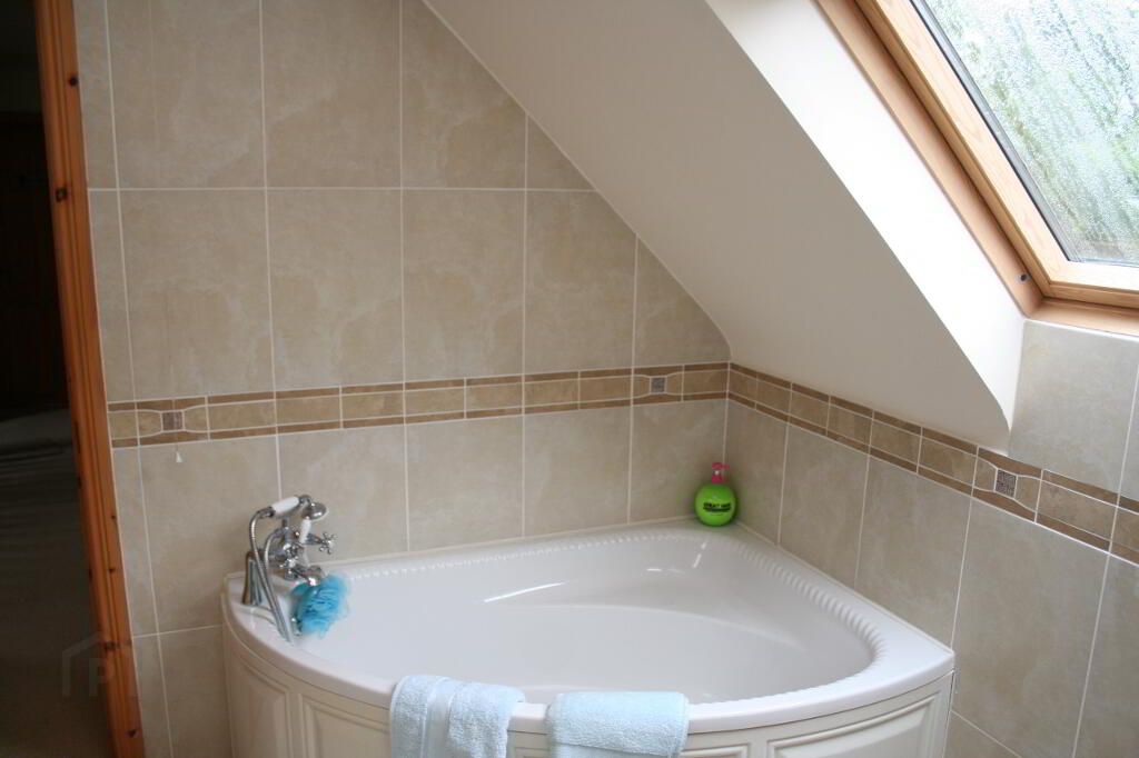 FAMILY BATHROOM 2.9 X3.6 M WITH WHITE BATHROOM SET INC WHB, SEPARATE SHOWER , WC AND SUNKEN BATH.