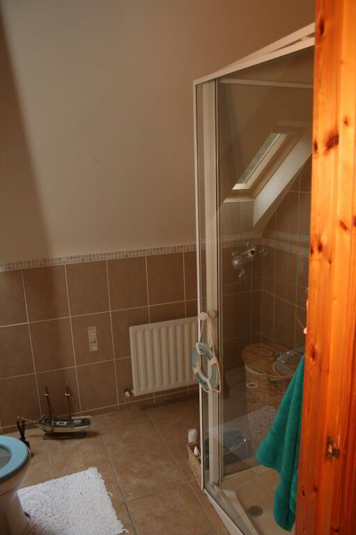 BEDROOM 4 MASTER WITH EN SUITE 4.7 X 3.7 M WITH CARPET FLOOR AND ADJOINING WALK IN CUPBOARD 2.2 X2.2 M AND ADJOINING ENSUITE WITH WHITE WHB. SEPARATE SHOWER UNIT , WC AND FULLY TILED FLOOR AND WALLS WITHIN.