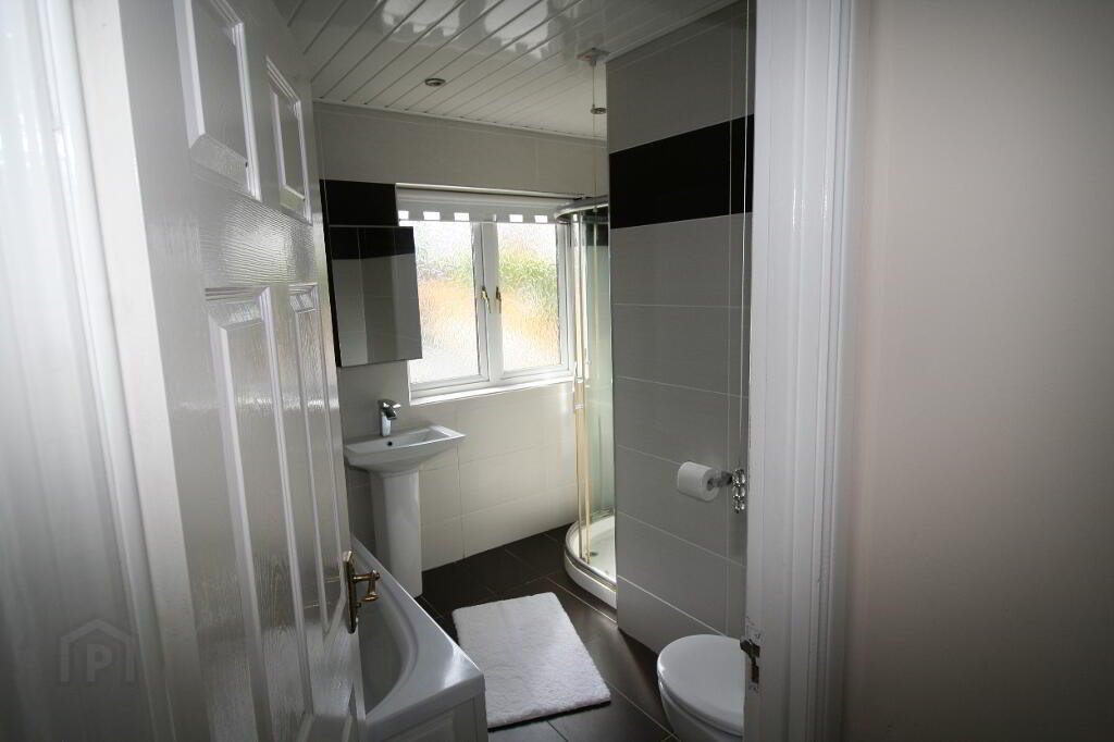 FAMILY BATHROOM 2. 47 X 2.69 M WITH WHITE SUITE AND FULLY TILED FLOORS AND WALLS WITH SEPARATE SHOWER UNIT.