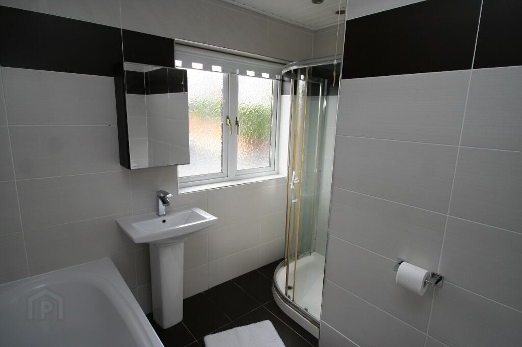 WHITE BATHROOM SUITES AND SEPARATE SHOWER IN FAMILY BATHROOM