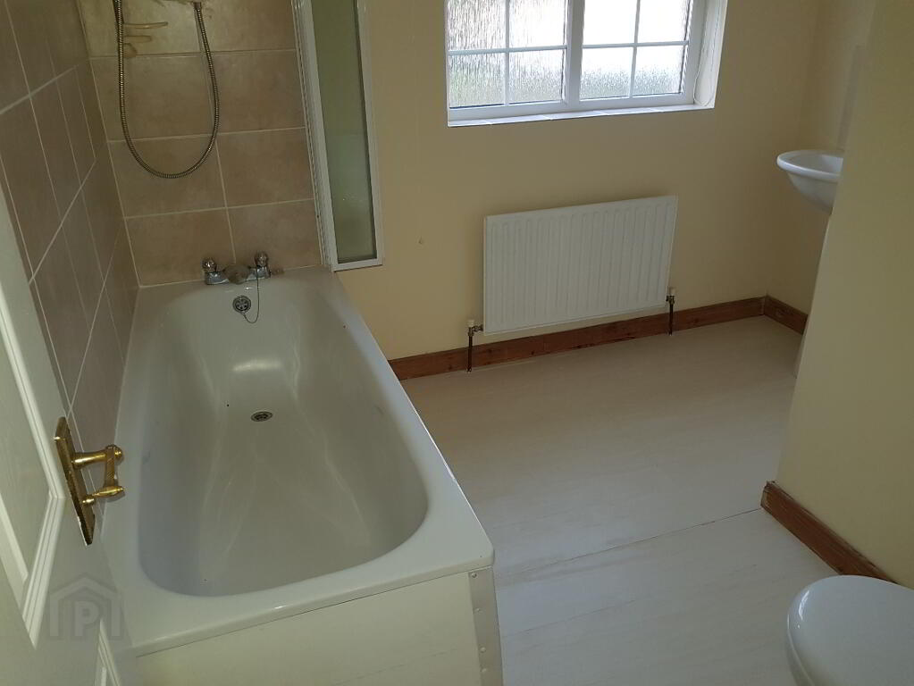 FAMILY BATHROOM 2.83 X2.7 M WITH TILED FLOOR AND TILED SHOWER AREA , SEPARATE SHOWER,WHB, WC AND BATH IN SITU.