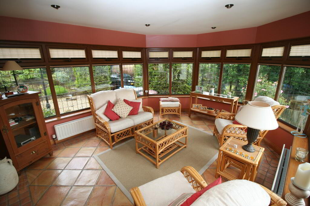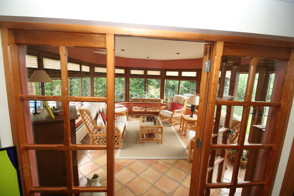 sunroom/ conservatory with dividing double doors 4.87 x 4.87 with tiled floor and entrance doors onto rear garden areas