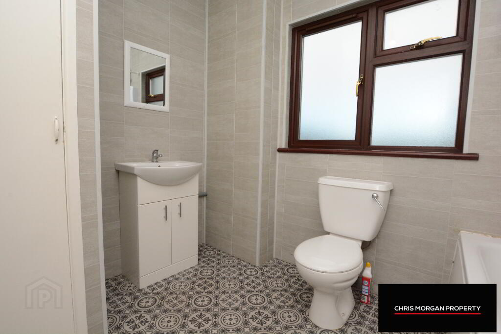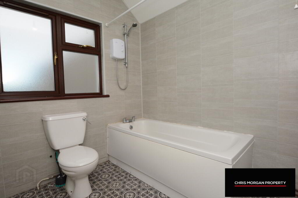BATHROOM 2.6 X 2.1m FLOOR COVERINGS, WHITE SUITE , SHOWER UNIT. WHB/WC
