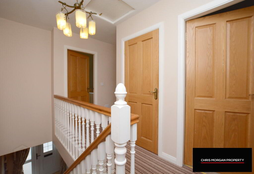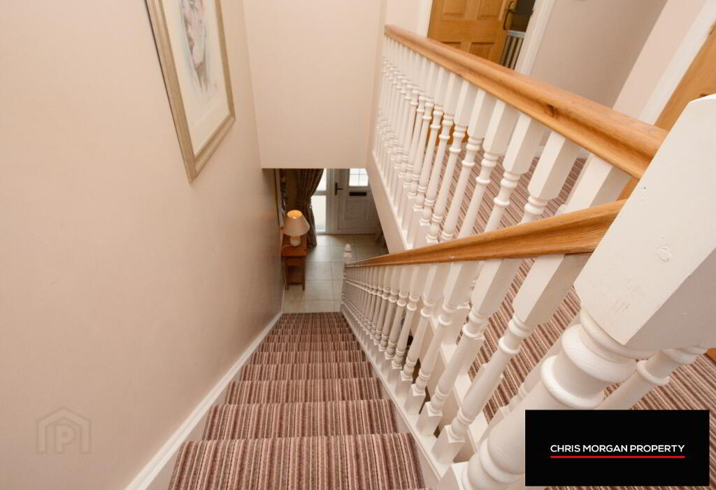CARPET FINISHED FLOORS UPSTAIRS AND HALL STAIRS AND LANDING AREAS.