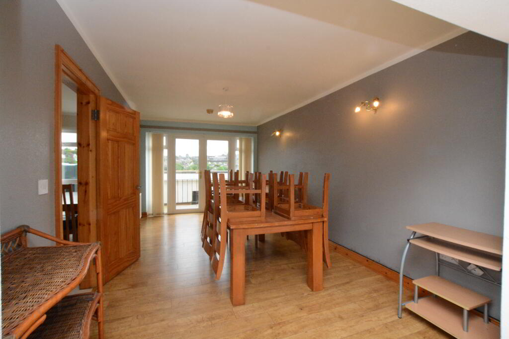 LIVING / DINING AREAS 3.75 X 9.3 M WITH WOODEN FLOOR AND REAR PATIO DOORS .
