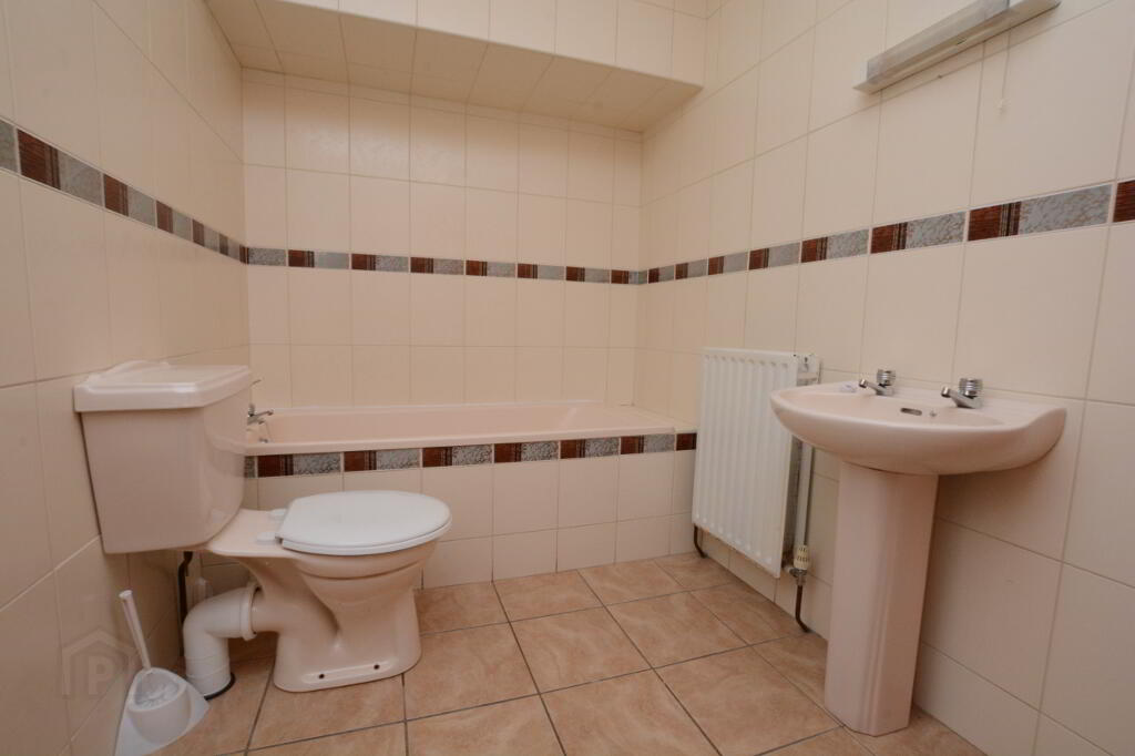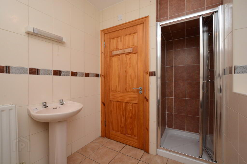 FAMILY BATHROOM 2.25 X 2.85M WITH TILED FLOOR, HALF TILED WALLS, WHB, WC, SEAPRATE SHOWER AND HOT PRESS IN SITU