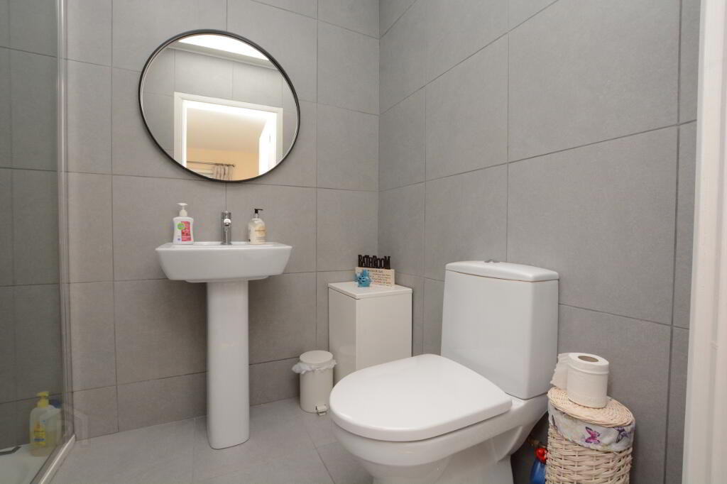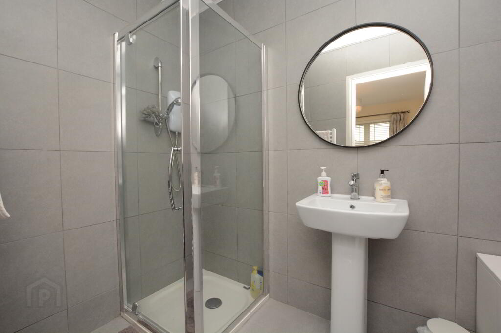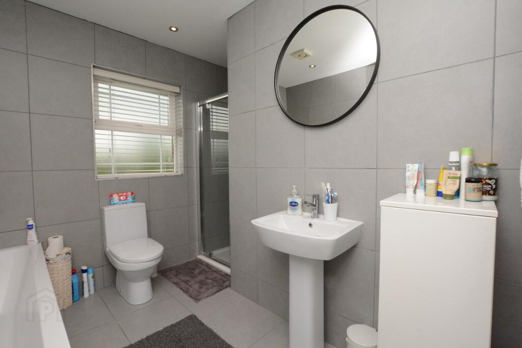FAMILY BATHROOM 2.8 X 2.6M WITH FULLY TILED WALLS AND FLOOR AND SEPARATE BATH, SHOWER UNIT , HEATED TOWEL RACK , WHB , AND WC ,