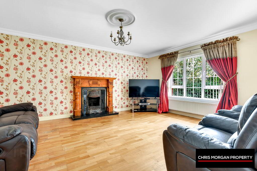 LIVING ROOM 5.1 X 4.4 M WITH WOODEN FLOOR , FEATURE MARBLE FIREPLACE