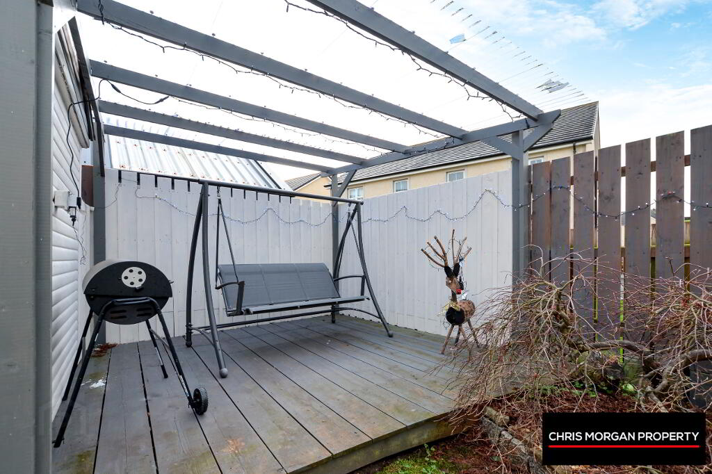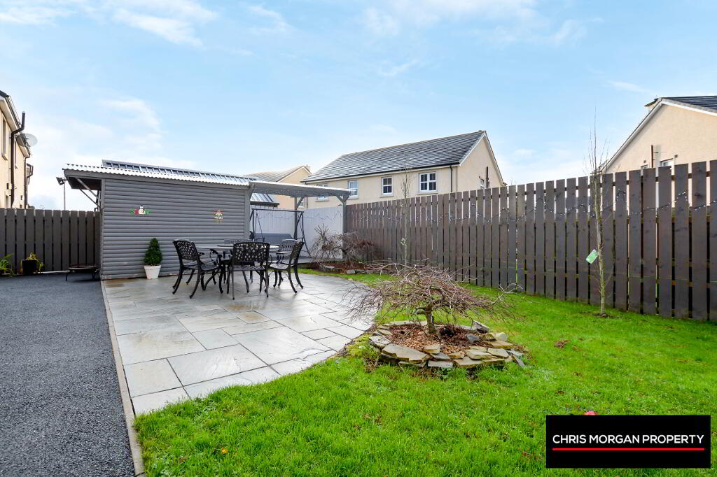 REAR ENCLOSED GARDEN WITH PATIO AREA AND OUTSIDE DINING AREA WITH SHED IN SITU .