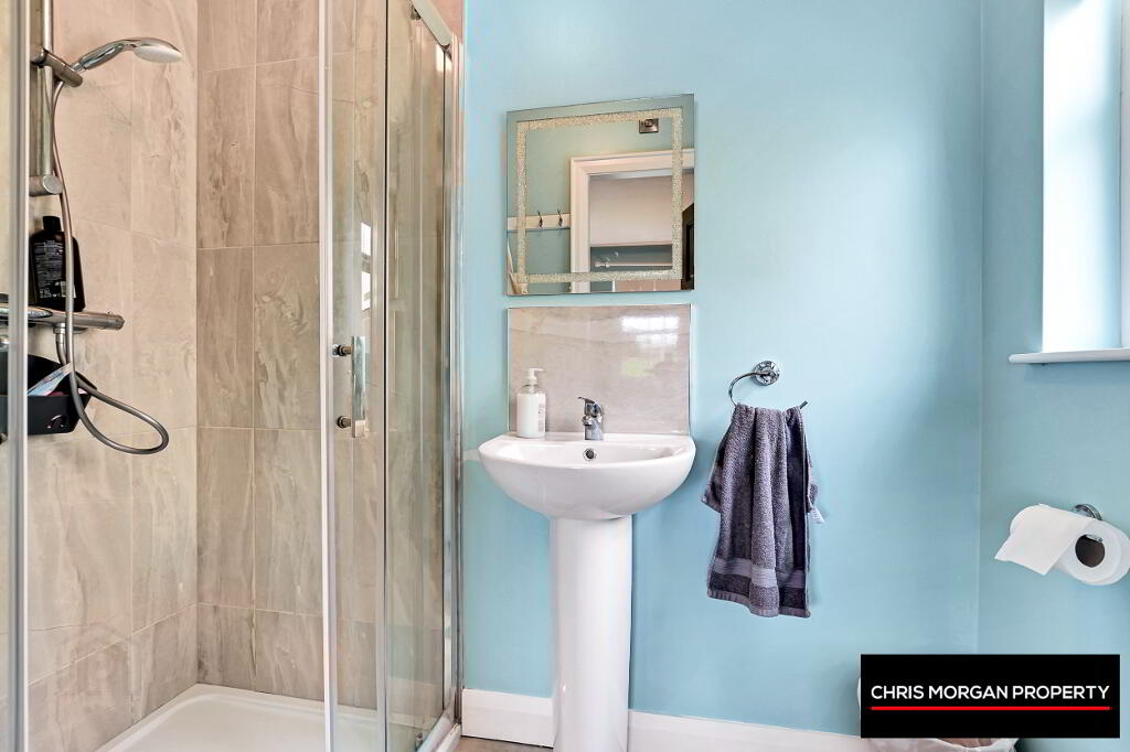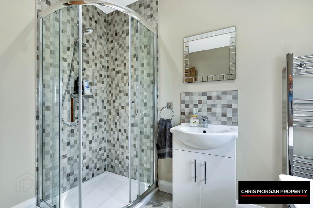 BEDROOM 4 3.8 X 3.6 M WITH WOODEN FLOOR AND WALKIN CUPBOARD AND EN SUITE 2.3 X 1.3 M WITH TILED FLOOR , WC , WHB AND SHOWER .