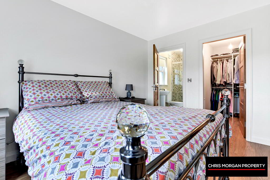 MASTER BEDROOM 5.8 X 4.2M WITH WOODEN FLOOR , ENSUITE 2.3 X 1.4 M WITH TILED FLOOR, WC , WHB AND SEPARATE SHOWER UNIT AND WALKIN DRESSING ROOM 2.5 X 1.3 M WITH RAILS .
