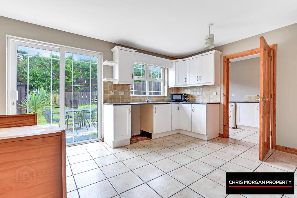 KITCHEN - 4.8 X 3.8M - TILED FLOOR/WALLS, HIGH AND LOW UNITS , PATIO DOORS INTO GARDEN AREA , INTEGRATED UNITS