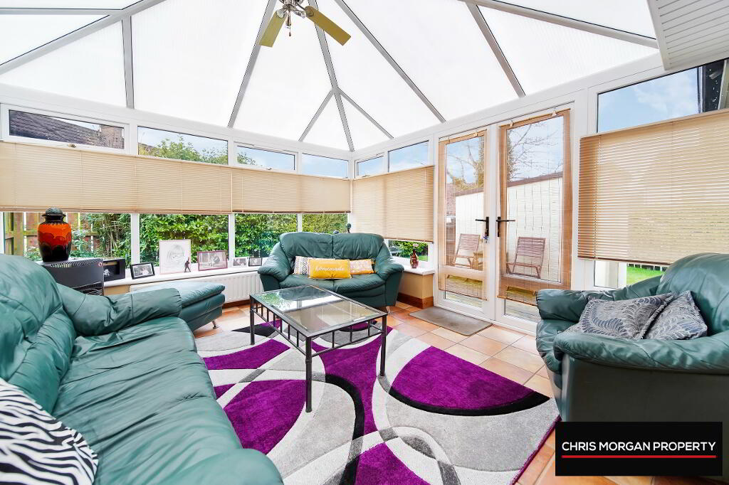 SUNROOM - 4.3 X 3.8M - TILED FLOOR, UPVC DOORS LEADING TO REAR OF PROPERTY, 2 DOUBLE RADIATORS, GLASS ROOF