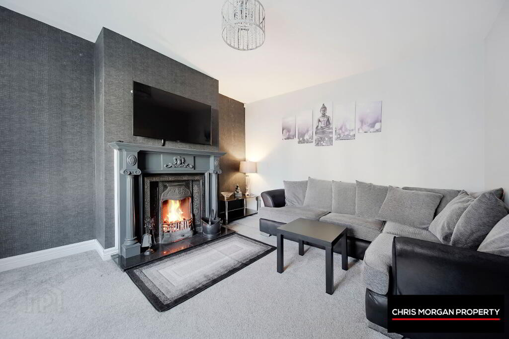 DOUBLE BAY WINDOW OVERLOOKING FRONT OF PROPERTY, CARPET TO FLOOR, FEATURE OPEN FIREPLACE, TV POINTS TO WALL, DOUBLE RADIATOR, WALL SOCKETS