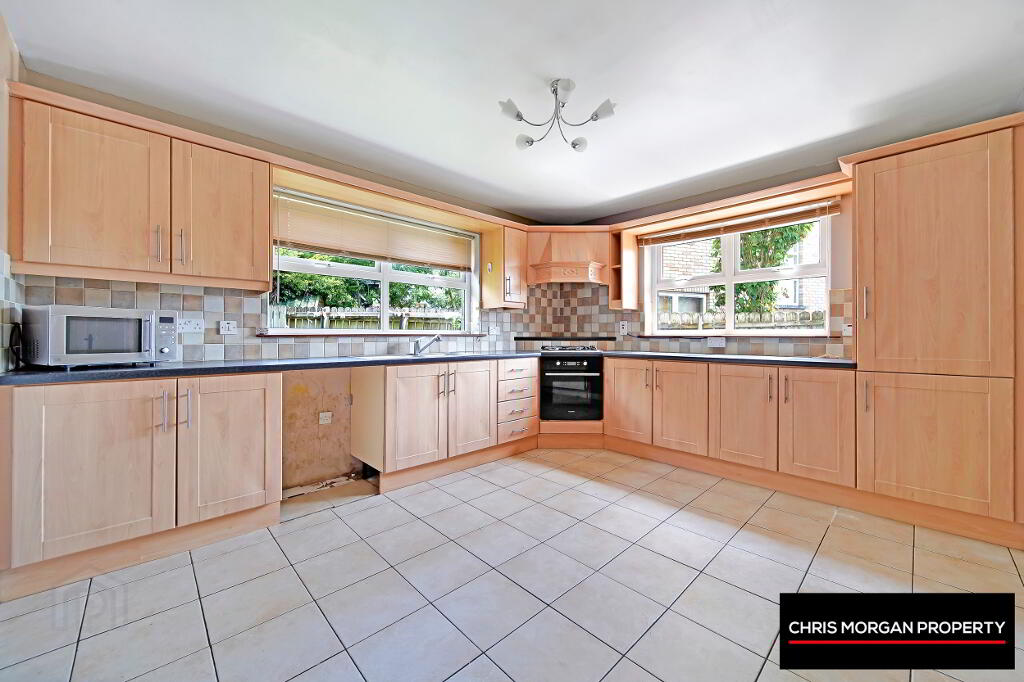 TILED FLOOR & SPLASHBACK WALLS, HIGH AND LOW UNITS WITH BUILT IN COOKER/HOB, STAINLESS STEEL SINK WITH DRAINER TAP, DOUBLE RADIATOR, WALL SOCKETS