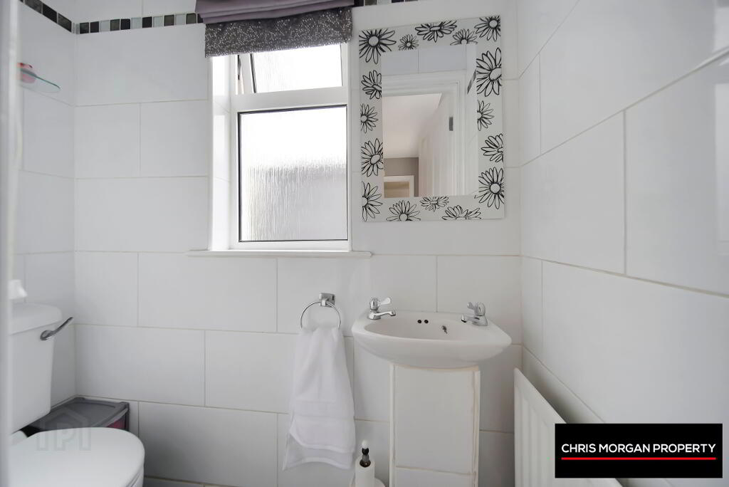 TILED FLOOR & WALLS, WC, WHB, SINGLE RADIATOR