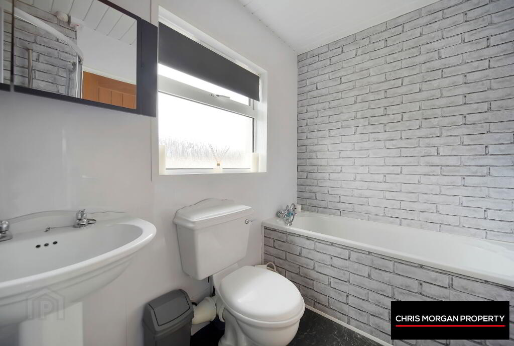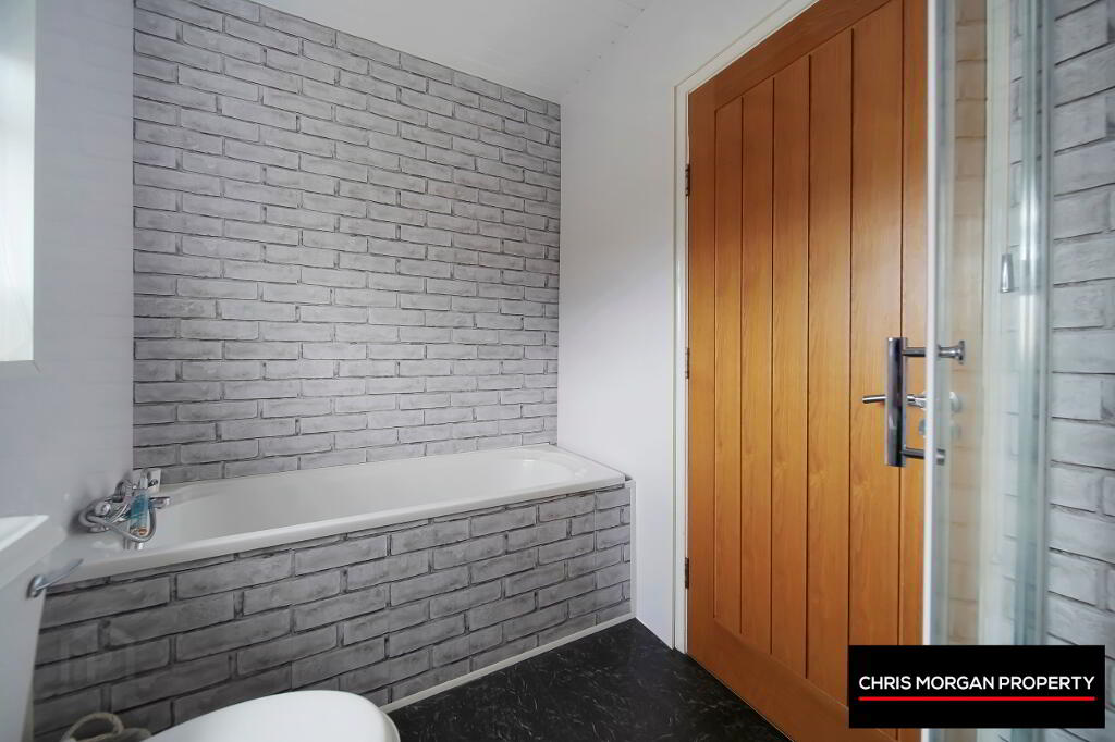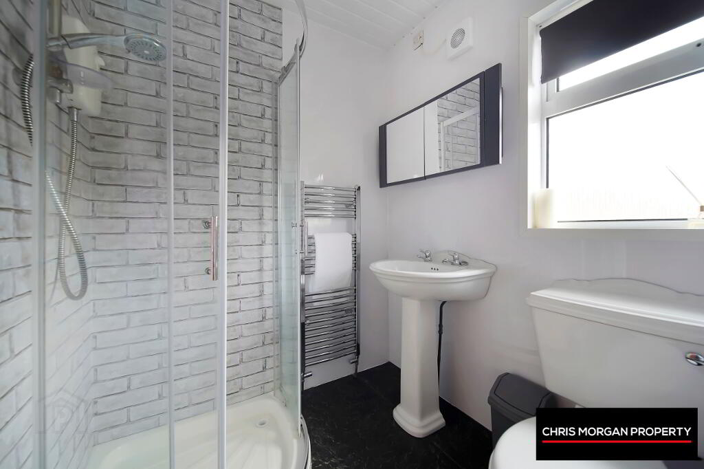 LAMINATE FLOOR COVERING, PVC CLADDING TO ROOF, WC, WHB, SHOWER, BATH, HEATED TOWEL RAI;, EXTRA FAN