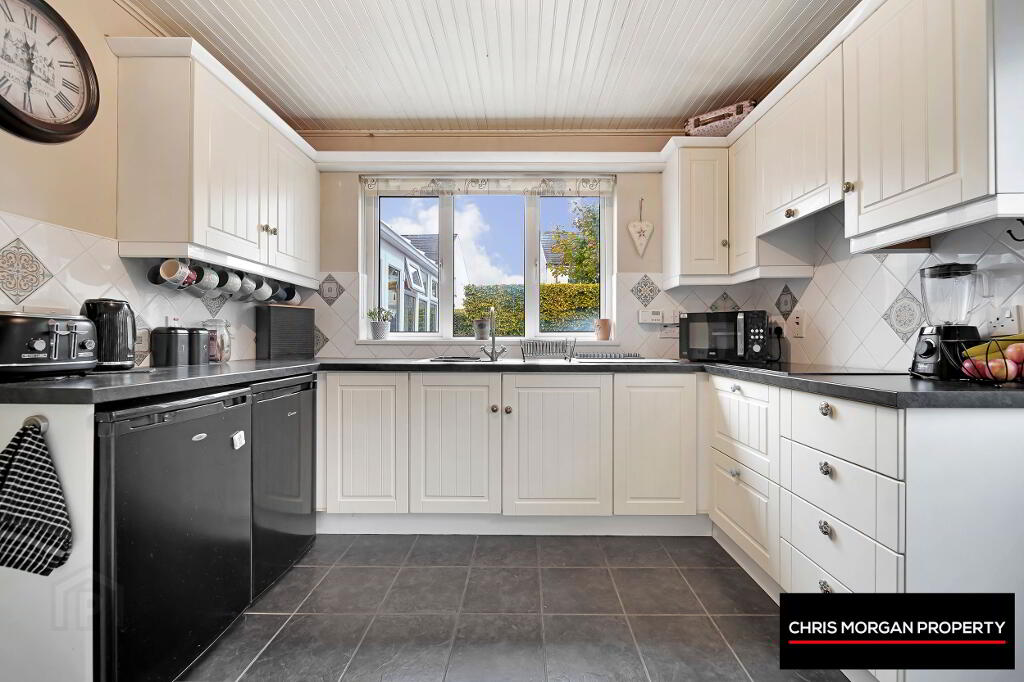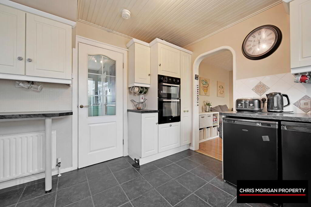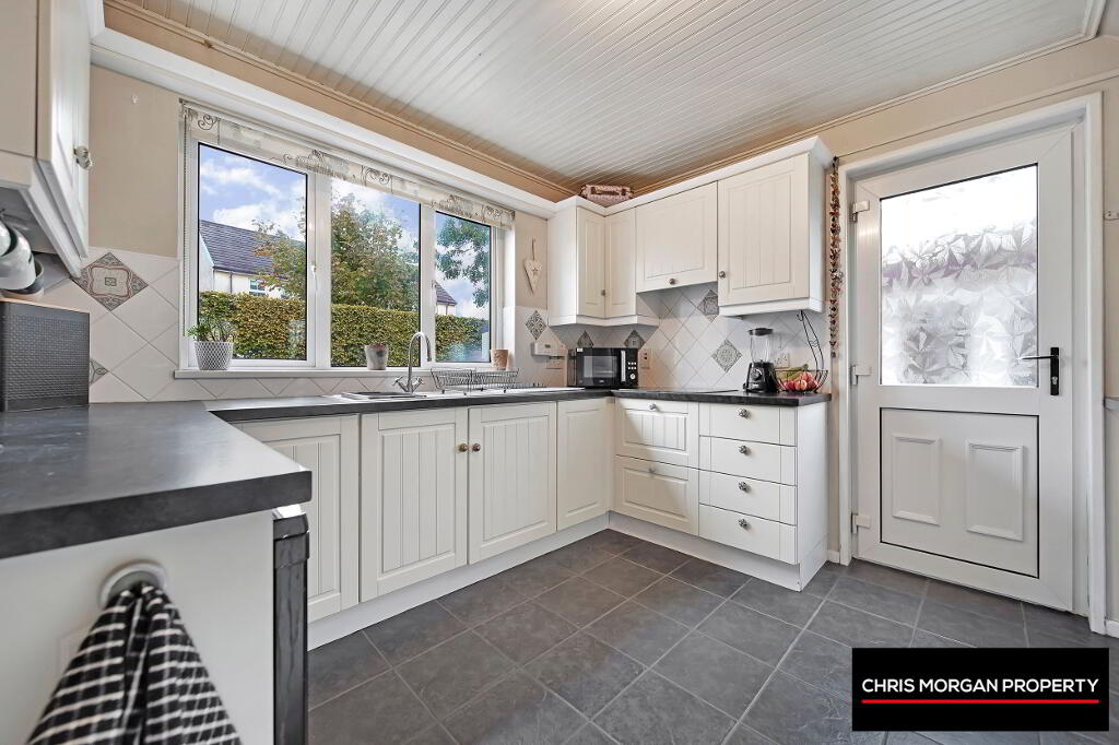 TILED FLOOR & SPLASHBACK WALLS, HIGH & LOW UNITS WITH BUILT IN COOKER/FAN, STAINLESS STEEL SINK WITH DRAINER TAP, WOODEN ROOF, DOUBLE RADIATOR, WALL SOCKETS, UPVC DOOR LEADING TO SIDE OF PROPERTY