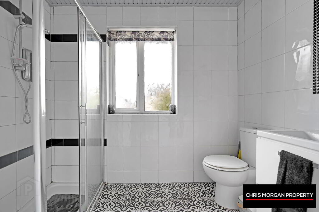 TILED FLOOR & WALLS, WC, WHB WITH BUILT IN STORAGE SPACE, SHOWER, SPOTLIGHTS TO CEILING, TOWEL RACK, EXTRA FAN