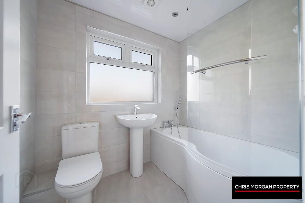 TILED FLOOR AND WALLS, SPOTLIGHTS TO CEILING, WC, WHB, BATH WITH SHOWER HEAD, EXTRA FAN