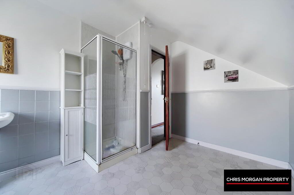 LAMINATE FLOOR COVERING, TILED WALLS, WC, WHB, SHOWER, SINGLE RADIATOR, WALL SOCKETS, BUILT IN STORAGE SPACE
