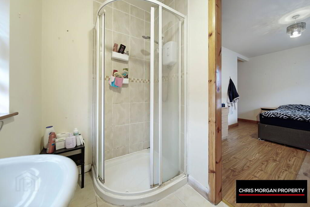 TILED FLOOR, WC, WHB, SHOWER, SINGLE RADIATOR, EXTRA FAN