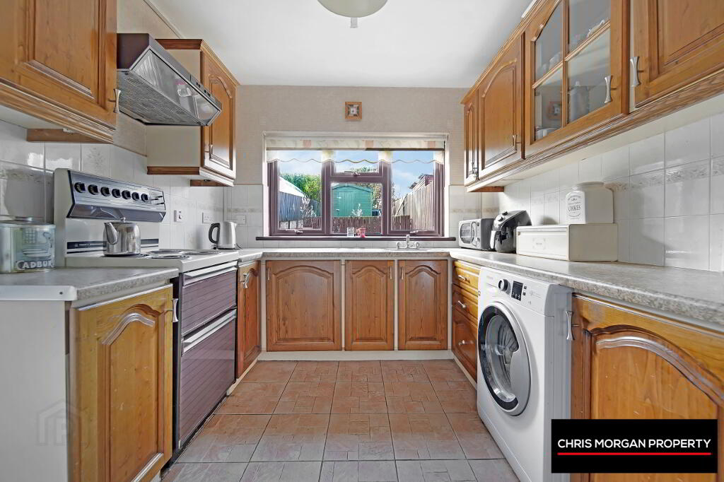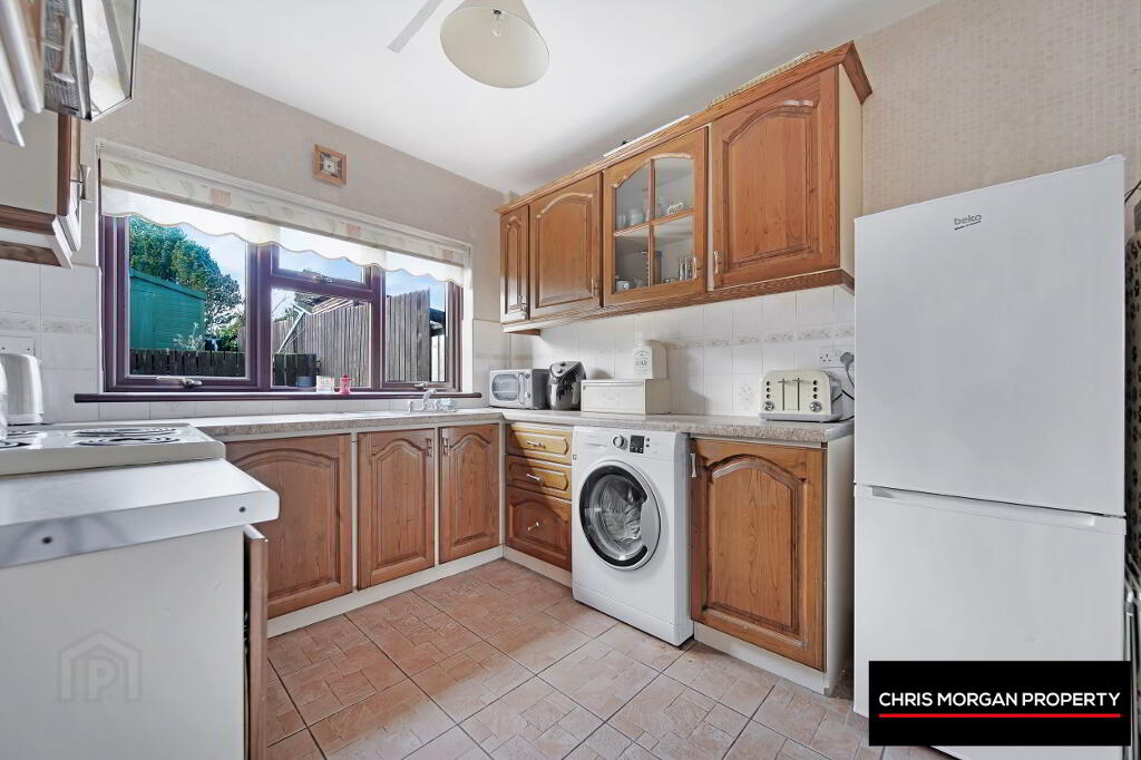TILED FLOOR & SPLASHBACK WALLS, HIGH AND LOW UNITS, STAINLESS STEEL SINK WITH WASHER TAPS, SPACE FOR BUILT IN APPLIANCES, DOUBLE RADIIATOR, WALL SOCKETS, UPVC DOOR LEADING TO REAR OF PROPERTY